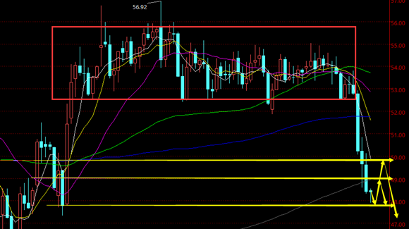 周五(2月24日)欧盘阶段,国际油价在亚盘震荡后择空走势,小时线连续收阴,油价承压小幅下跌,目前交投在54.2美元附近。回复昨日重要行情,在美国公布EIA原油库存前夕,受美国财长言论打压美元指数利好油价及API库存意外减少,导致市场疯狂押注EIA也将减少影响,油价大幅上涨,最高触及54.9美元。虽然EIA库存增加,美原油库