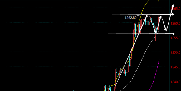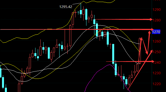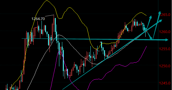 上周行情回顾 黄金上周整体呈现拉升的态势,周线收阳,包括前面从1214开始反弹,除了周三大涨之外,其他行情节奏都很慢,前期是小震荡逼空式上升,周尾的行情更慢,在周尾日线压制下,行情走不出大波动,没有大涨大跌就震荡收尾,我们回顾上周的行情,周一收小阳,周二收大阳,开始了黄金触底拉升的走势,周三行情再度突破