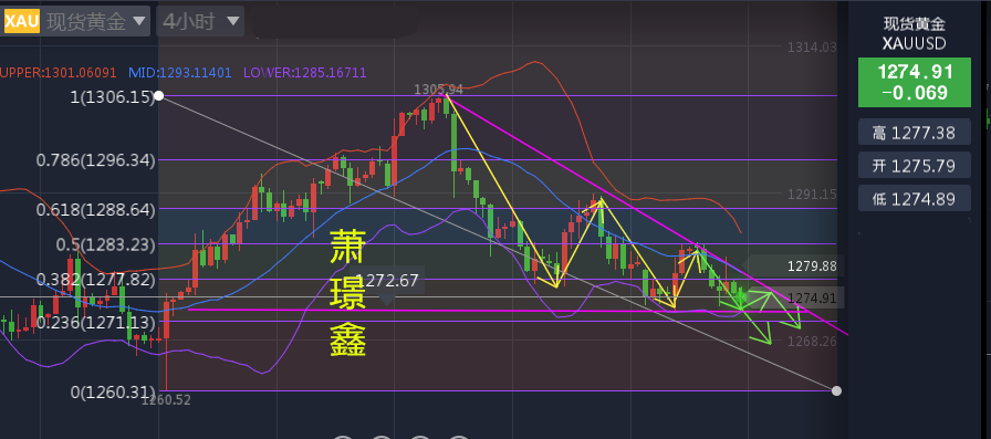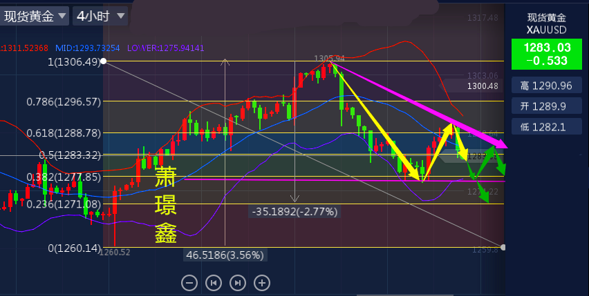 隔夜受到消息面的影响美指上演惊魂过山车,V型走势跃然盘上,国际现货黄金应声走出倒V走势,这基本符合笔者昨日看震荡的走势。金价昨日开盘于1282.4美元一线,亚盘时段小幅反弹至1283.7一线后开始下行,欧盘延续跌势继续下行,美盘时段前段时间金价小幅震荡盘整,直到消息面传来有关特朗普税改和美联储主席人选这两则重磅消