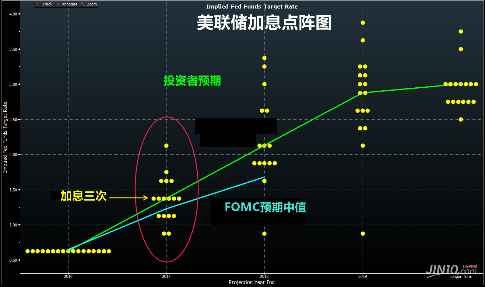 北京时间周四凌晨2:00,随着美联储宣布加息25个基点至1.00%,自此为止这场如市场预期的加息大戏最终落下帷幕。此次美联储加息是自金融危机以来美国第三次加息,此次加息后美联储成为全球第一家自金融危机以来进行政策转变的央行。政策声明表示,美联储预计2017年将加息3次。随后凌晨02:30,美联储主席耶伦召开新闻发布会,