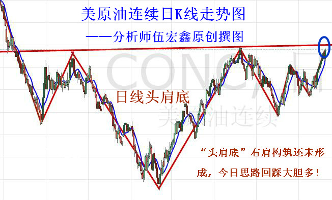 伍宏鑫:原油日线头肩底 今日回落大胆多 北京时间10月11日伍宏鑫/撰油价多头爆发暴涨2美元,想必大家有在关注行情的都知道,因为俄罗斯总统普京大开金口,普京周一在伊斯坦布尔出席世界能源大会期间讲话称,希望OPEC在11月份就限产达成一致,俄罗斯做好了准备支持这一决定。这一巨大利好消息直接刺激油价涨幅超过上周三EIA
