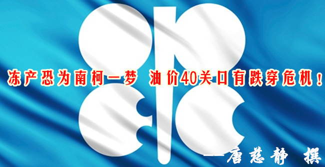 唐慈静:冻产恐为南柯一梦,原油40关口能否企稳?多单被套何解? 摘要:周二(9月20日)原油价格震荡下行,因空头施压油价上行乏力,虽美元意外回落提振,但供应过剩犹存,而冻产一波三折仍未拿出具体措施,原油投资者以对此形成免疫。 ==唐慈静:OPEC冻产恐难达成== 就目前而言,对冻产传闻较为有利的消息分别有两点: