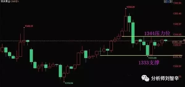 刘智辛:美元韧性十足,黄金反弹修正遇阻,原油继续走窄 6月18日金价剧烈震荡,此前美国总统特朗普的讲话燃点市场对贸易争端将很快终结的希望,黄金日内修正完毕后开启涨势,短暂上涨1%,最高触及1354.6一线,美盘美股高开再次提振风险市场的一个影响,进一步削弱了黄金的避险需求,短线黄金快速回落,日内早间也是同样的情况,股市提振市场的了风险偏好,限制了黄金的涨势。 昨日美油涨超4%,主要因为贸易局势的忧虑缓和,减少了最近几周预期下降的经济增长路径给油市带来的沉重压力,此外中东地区美国于伊朗的紧张局势也给油市提供了支持。 现货黄金行情分析 昨日黄金进一步修正完毕,依托1338位置开始走高,欧盘一度冲