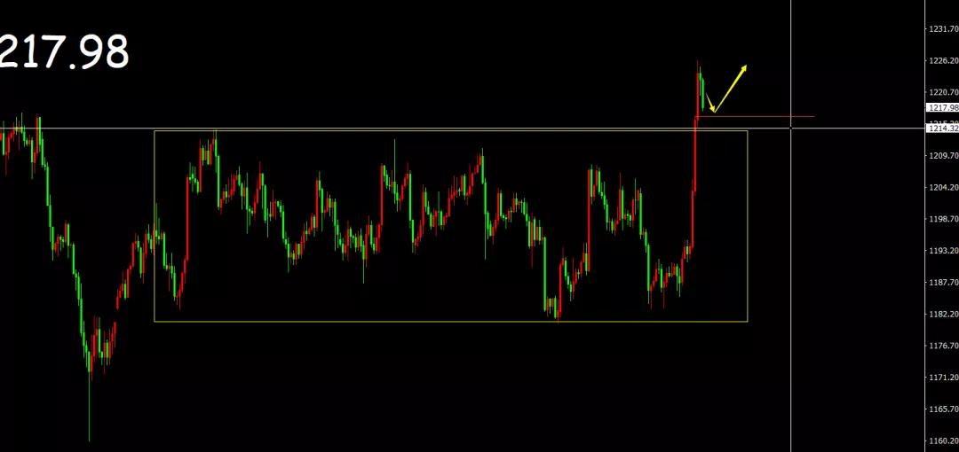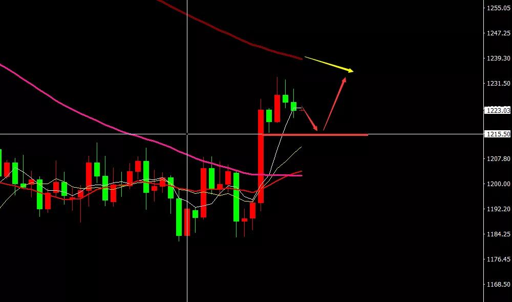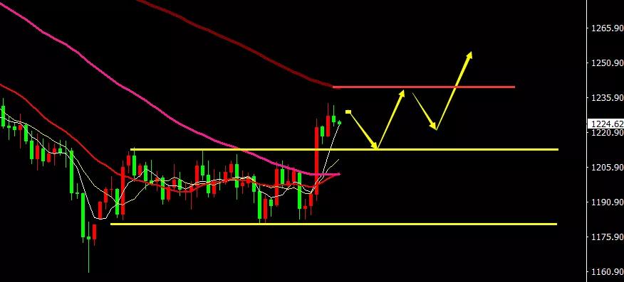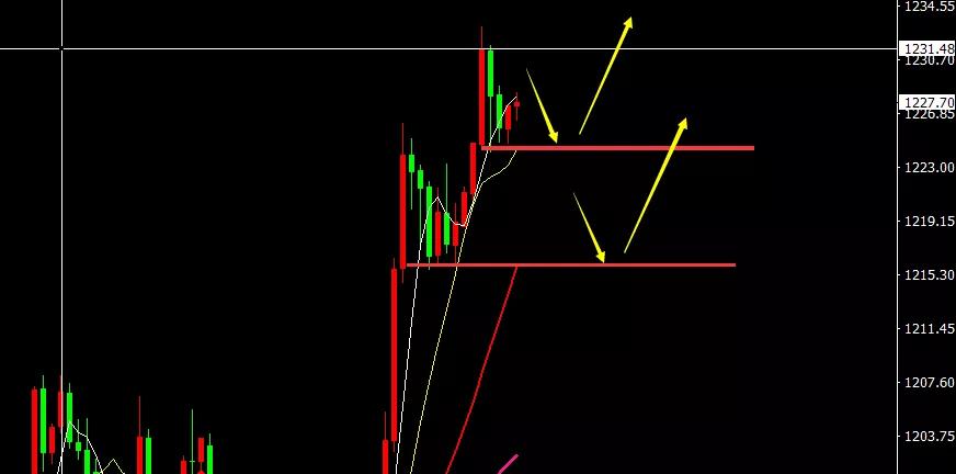 刘智辛:美股崩盘使得资金外逃,黄金避险宠儿再次上线 【现货黄金行情分析】 昨日黄金走势真的可谓是多头的一枝独秀,多久没有看到多头走的如此彻底,全天近40美金的反弹是的黄金日线收出大阳,并且关键位1214一线在昨日晚间美盘时段顺利收复,而主要原因是全球股市大跌,加上昨日晚间美股跟随跌势,市场恐慌性的避险买盘激增带动黄金的一波快速拉伸,而对于全球股市低迷的情况下,黄金再度获得避险需求,并且它的属性一旦被处罚的,它的一个价值也能很快体现,总的来说昨日多头是打了一个漂亮的翻身仗; 日线收线上看,黄金一根大阳线直接击穿各大均线,并且箱体区间的阻力位也是顺势被拿下,盘中最高触及1226一线,美盘后半段价