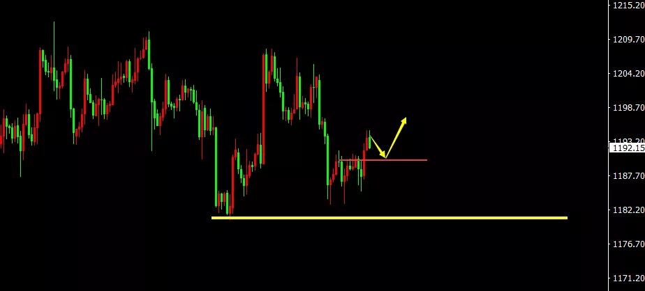 刘智辛:全球股市大跌促使黄金避险买盘,关键位不上震荡对待 【现货黄金行情分析】 昨日黄金再次走出了一个探底回升,这和前两天的走势有些相似,不同的是昨日美盘的反弹走的更为彻底,下方在触及1185一线之后遭遇买盘支撑,价格出现反弹,并且美盘反弹力度是刷新了日内高点,这里刚好也是昨日多单布局的点位,算是顺利把握到了日内全部反弹利润,最终日线也是收取了一根带有下影线的中阳; 日线收线上看,昨日的中阳线和前一天的十字星收线有些相互呼应的意思,但是否形成启明星式的反转,当前还是不敢说,毕竟非农过后,黄金价格是从千二之上开始下跌,而近两天的反弹相对前期的下跌来讲还是有些不足,所以主线趋势上,空头仍就是占有