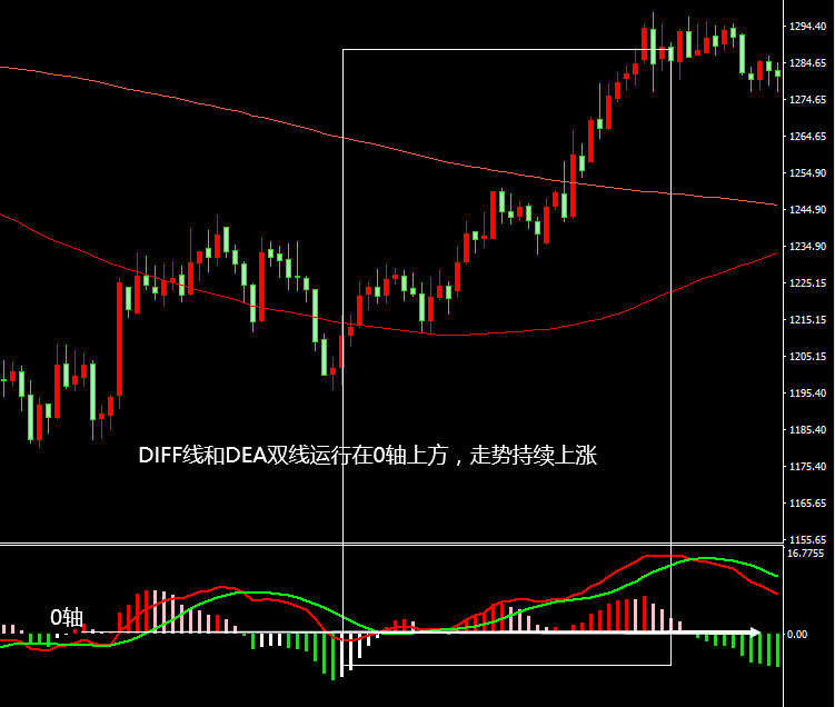 刘智辛:玩赚黄金投资交易之MACD的趋势持续和反转 交易上,除了可以根据MACD的动能柱来判断方向和力度。也可以通过其DIFF线和DEA线的值和位置,可将它们所代表的意义总结为以下四种情况进行交易: ①DIFF和IDEA值形成的指标线都位于0轴上方,并且金叉维持,整体趋势是向上运行,其价格在MACD指标的有力支撑下也在不断高走。此时,如果晚进场的朋友仍可以大胆买进,积极介人。便能搭上一波顺风车。 ②DIFF和DEA值形成的线位于0轴下方,两指标又同时向上运行。 这种情况意味着行情即将启动,走势即将升高,可以选择积极介入 ③DIFF和DEA值形成的指标线都位于0轴下方,且向下运行。 这种情况的