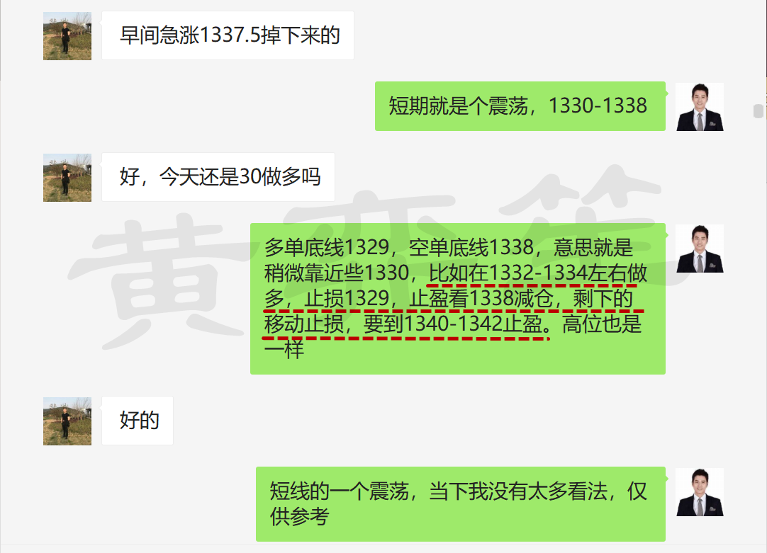 黄弈笙:黄金37空20,反手接多抄底完美收官!买卖预期合作分成! 趋势交易是赚钱的不二法则,一定不是涨多了做空,跌深了做多,呆呆式交易,那样全世界人都可以赚钱,今天单边来袭保证再次懵逼一片看戏的份! 黄某能发文的位置全部提示1319就是阶段多起点,周二1323多再次底仓建立、周三1326文中现价多、1330突破多,可惜的是这次回调只走了一笔,那么早盘并没有因为冲高走C浪下跌,第一时间就是反应变盘来临1344多直接买入,再次一米长阳暴涨拉起,要做的就是止盈取消,不断上移保护损,因为趋势来了就是简单凌厉走势,连续两篇文章说1337下加大回撤1320附近,文中目标不设置那当然就是波段底仓布局,如果