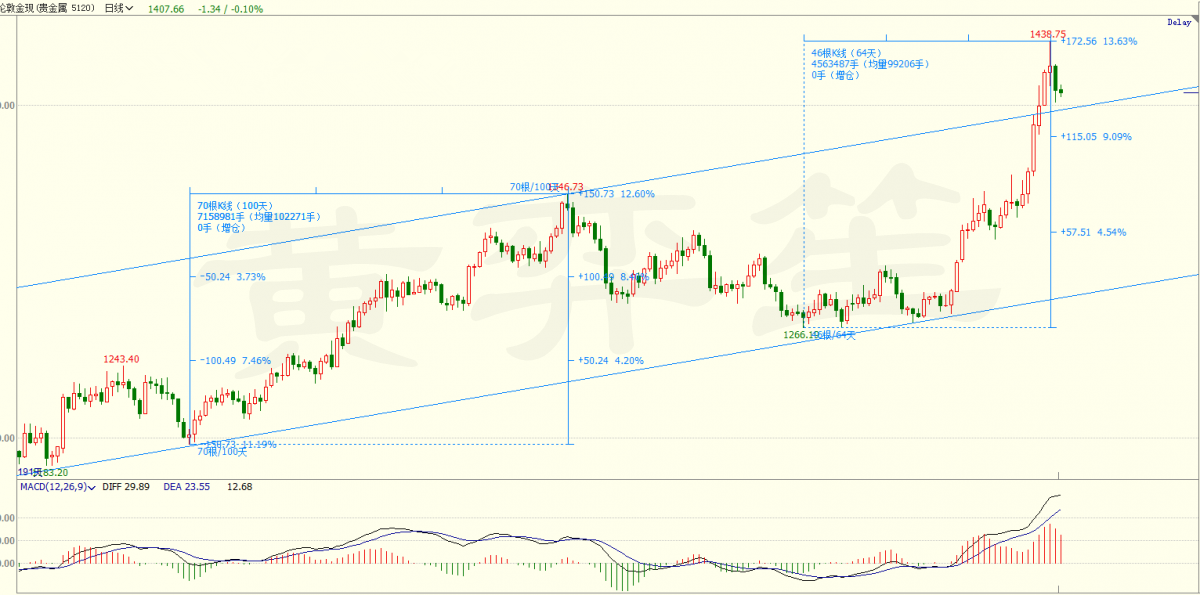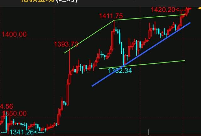 黄弈笙:黄金1404强上车收割16美金!扛仓致残,重仓致死! 黄金涨涨涨,何时才会回调,何时才会见顶?昨天我们的思路黄金还在上升的结构模式之中,上周周线大阳线会给到本周黄金继续刷新高创造机会。昨天尾盘黄金上破1412,今天早上继续走高。看到这样恐怖的涨势,你是否害怕了?所有的害怕都来源与对市场的不了解! 黄金周一跳空高开,美盘上破最高到1420,减仓后的多单带上盈利损保护后继续持有看向目标位!很多人都等着回落多,自1358上破以后还是有人忍不住博空单,你博的好,那还没啥,关键你博不好还老套着!我也是服了,这种行情要的就是果断和勇气! 黄金现在报1425附近! 这行情没什么好讲的,依旧是仓位和