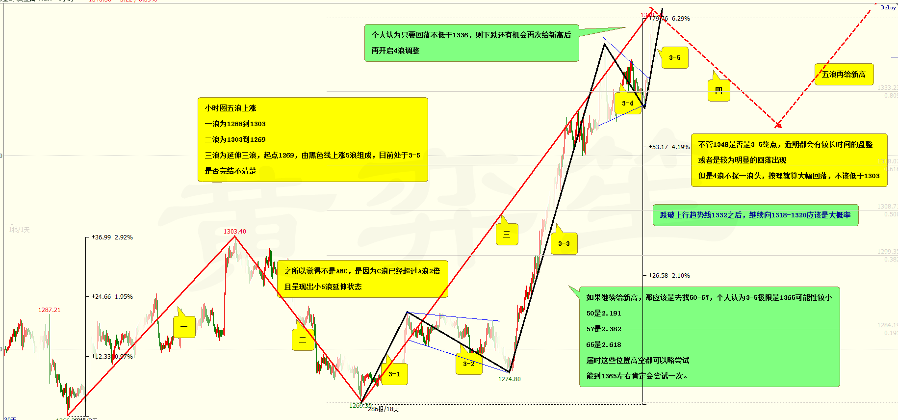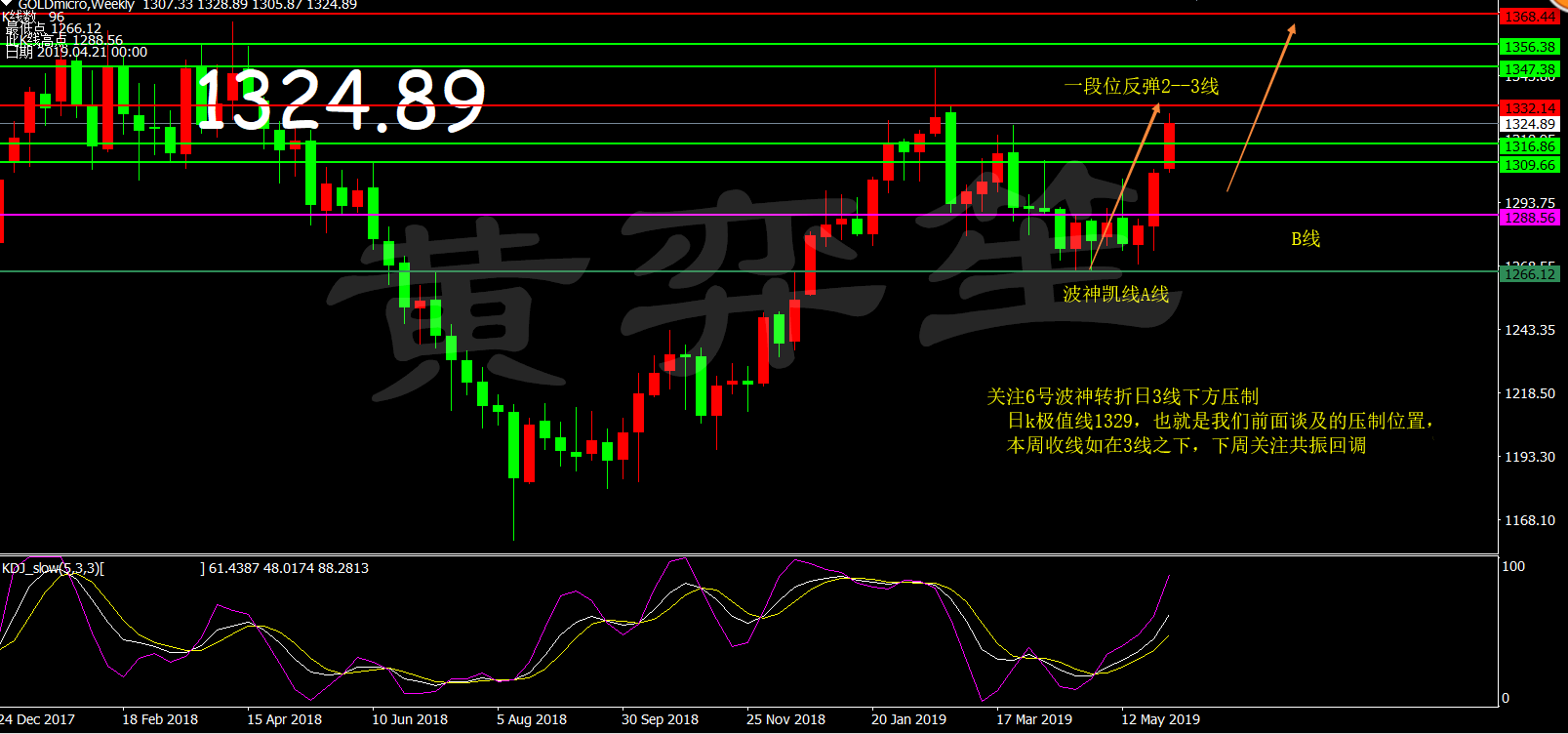 黄弈笙:黄金1329迎来中线回撤?极线共振技术拐点合作分成! 周二黄金围绕1329-1320做区间震荡,这个回撤的空间有9美金,不小也不大,从长期投资的角度讲,出现这样的逼空行情也不多,也是体系投资中我们要面对的问题! 单边行情逼空行情中比较难点的压制存在技术点,但调整确很难抵达好的位置,只能激进进行,这不是重点,重点应该还是在是否重仓,飘仓这里,这对于规律化投资有着至关重要的作用,而很多朋友就在这个位置习惯性的出现重复错误是不对的! --周线1329-32以下看回撤-- 1)黄金1266双底上升结构中我们可以看到:一段位反弹2-3线(1316-1332),退场要在两线半,黄金在1332下方