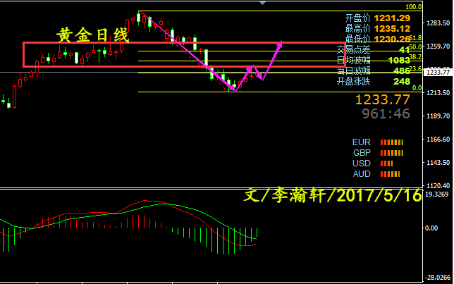 下探后走强,企稳后破高,昨日黄金市场在白盘时间维持慢牛上涨,晚间盘上破1230阻力后径直拉升至最高的1237美元,形成短期内高点。由于上涨过后没有收住涨势,日线倒垂阳的收取无疑会加剧空头的再下行,鉴于此,1237美元即有可能成为市场二次下跌的新起点。 周末时间段朝鲜成功试射弹道导弹,加剧地区间紧张局势,黄金借此