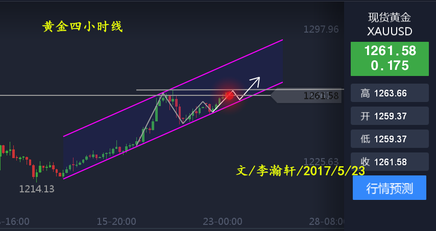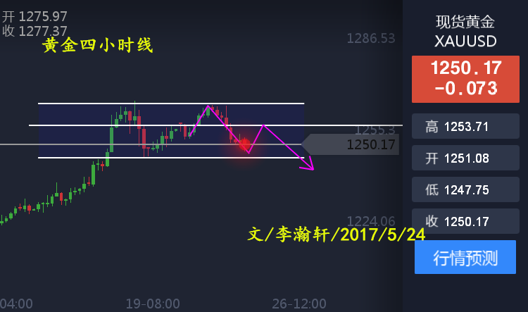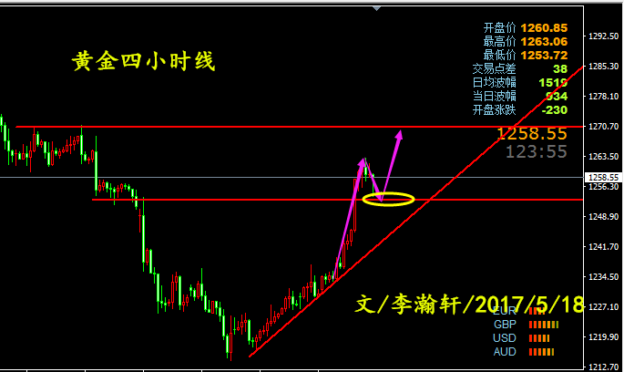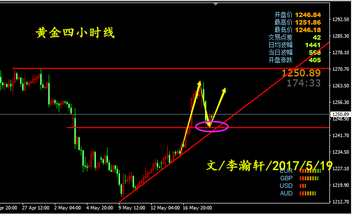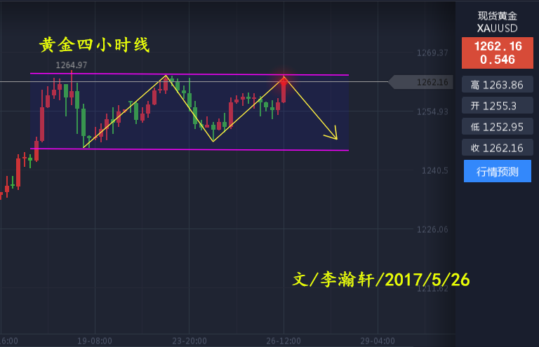 大涨过后遇强阻,回撤转阴要调整!强烈的上涨需要基本面的推动,有效的下行需要阻力位的压制。昨日黄金市场延续此前强势格局盘中上探至1264美元高点,呈现单边上涨后在此承压回撤,后夜时段最低探至1245美元,跟随空头步伐,利润手到擒来。继周三盘黄金受到风险事件影响转而大涨后,之后所表现出的强势被乏力的态势所替代,