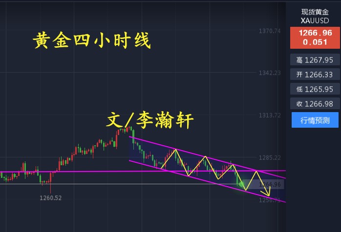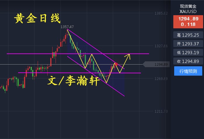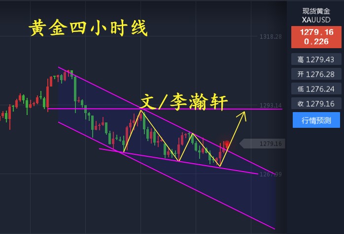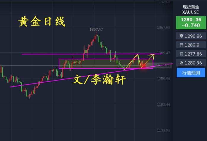率先破低,企稳反弹,走高收阳,这是昨日盘黄金市场走势表现。自早盘弱势下行触及最低的1276美元后止跌,由于此前连续空头运行已失去空间优势,随即我们于1277低位介入做多操作,亚盘整理后在欧盘时段得到很好的反弹,最终较低位置的多单收获极大的利润。受昨日盘强涨收高推动,今早间金价触高1291美元,不过并未进一步走出