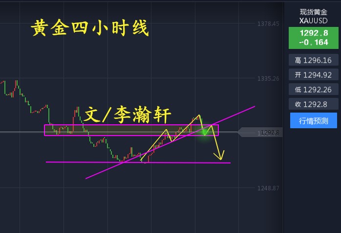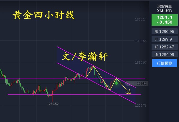 昨日因美朝局势有望缓和加上美联储下一任主席或更鹰派,美元多头迎来利好,黄金价格承压,由涨转跌,周二扩大跌幅,美盘时段盘中最低触及1283.4美元/盎司。本人认为,无论美联储下一任主席是谁,也不管美朝局势将如何发展,短期内黄金价格恐将承压。 黄金昨日可谓是走了一波大单边,从早盘开始黄金的下跌就从未停止,一直从