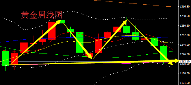 我们永远不要期待别人的拯救,只有自己才能升华自己。自己已准备好了多少容量,方能吸引对等的人与我们相遇,否则再美好的人出现、再动人的事情降临身边,我们也没有能量去理解与珍惜,终将擦肩而过。 现货黄金行情走势分析: 上周黄金周初大跌,之后略有反弹,周尾受非农影响,黄金再创新低,打破了前期低点1214,最低到达