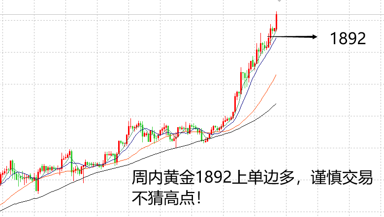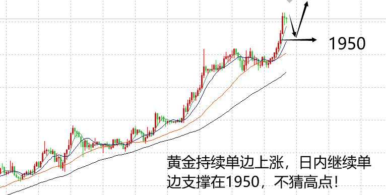 上周黄金单边上涨1800到1920,一周暴涨120美金,刷新了10年内黄金的最高点。市场不确定因素较多,近期金价上涨主要是两方面因素推动。一方面, 美元 下滑趋势明显,支撑 贵金属 价格;另一方面,海外新一轮经济刺激措施来袭,持有金银等避险资产的机会成本大大降低,实物资产迎来价值回归。另外,近期国际局势屡现紧张状态,多边摩擦不断,增强了黄金避险的能力,体现了黄金本身的价值!对于近期行情而言,交易的重点在风险控制,顺势交易为主,防止被套在高点,或者大止损,造成本金的流失,越是大行情越要注意不盲目交易。 早间黄金在1900直接跳高至1920附近,虽然试探了2011年黄金的高点不破,但未必是近期黄