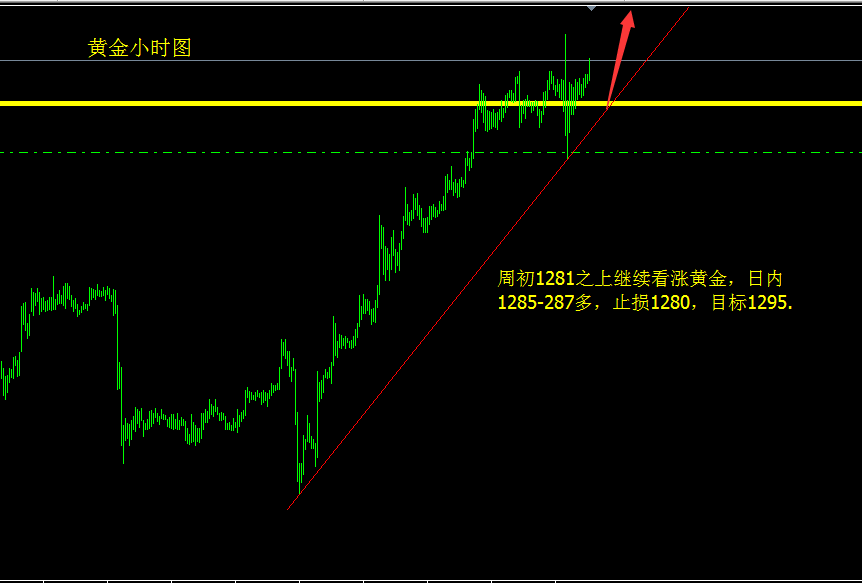 建立一套属于自己的赚钱系统,让市场说话,比任何的理论都靠谱。 黄金看来这次千三是势在必得,虽然上周的非农数据报告让黄金一度有见顶1274的迹象,在1295之下的见顶也是一个大区间的修正也不能说是一个单边的行情,黄金在上周下探回升,不仅仅一天收复失地还突破非农周的高点位置,将黄金推到了年线的强压区域,周尾两天黄
