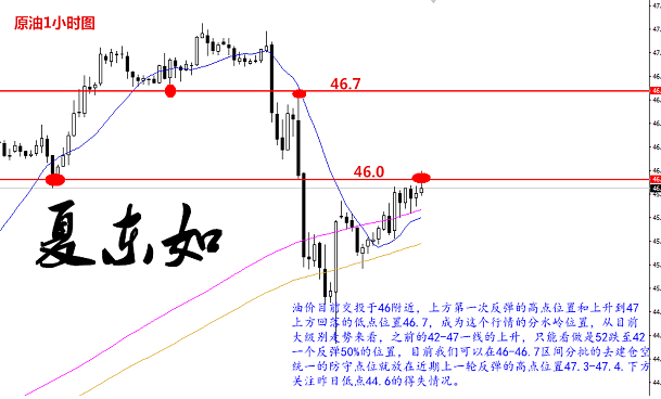 夏东如:7.6晚间EIA交易策略,附中线抄顶思路! 作者:夏东如 事有难易乎,为之,则难者亦易矣;不为,则易者亦难矣。桃李不言,下自成蹊,坚持者,总有坚持者的收获,无私者,纵有无私者的王冠。一点浩然气,千里快哉风,无惧百般苦,无冕亦朱缨。 昨日,一根大阴线直接收下来了,结束了之前的一波上升行情,从42上涨到了47的