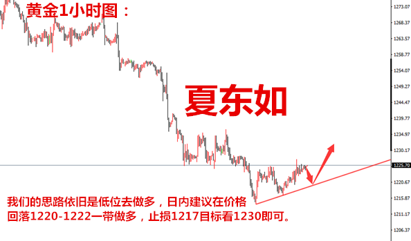 夏东如:5.11黄金回落给机会,原油强势回落多! 作者:夏东如 昨日,黄金因为美国总统特朗普意外炒掉联邦调查局长科米以后,投资者纷纷买入黄金避险。另外,朝鲜方面再度扬言核爆激发市场避险情绪回升也继续支撑金价。但黄金涨势仍然低迷,因市场预计6月份加息的概率偏大,目前行情处于多空相对焦灼的局面。 我们从技术面来