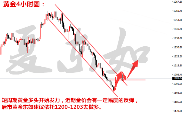 夏东如:3.13黄金、原油本周走势分析,及操作策略! 作者:夏东如 黄金,技术面来看,日线金价上周开始,自1234开始一路下探,于非农前最低触及1195一线,但是由于事实与预期的变换,非农利空但行情并没有延续下跌,短周期有企稳迹象,但是不可盲目看涨。从黄金分割来看,金价今年自1122一路上行至1263一线,近期的回落已经