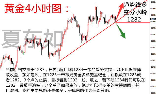 夏东如:8.23黄金低位等待抄底,原油区间高空低多! 作者:夏东如 分析永远是辅助,策略才是赢利的基本。对于技术,没有对错,关键性的分水岭,易成为行情转折的拐点抑或助推趋势的延伸。但交易中或结价操作中,咱们必须果断,在对的方向里坚持,而当方向错误时,调整战略就是进步,转身就是盈利。长期生存的理念不是一夜暴富