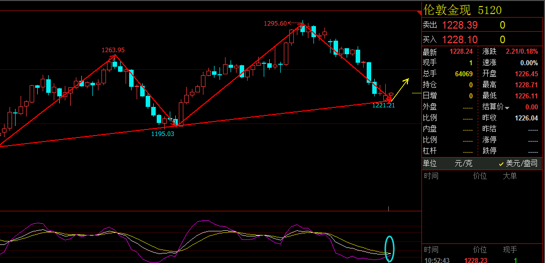 文/彭北元 黄金昨日出现小幅度下跌,今日开盘后延续之前弱势,接近欧盘阶段小时图一路收取阳线大有收复之前跌势的趋势。但是很明显,最稳健的思路是博取这一波回调反弹的短线即可,在昨天晚评中北元就已经指出一旦黄金在关键压制位1265附近回落,必将会处于整理收敛阶段回落蓄势。昨晚关注了北元文章或者是跟上实盘分析最后