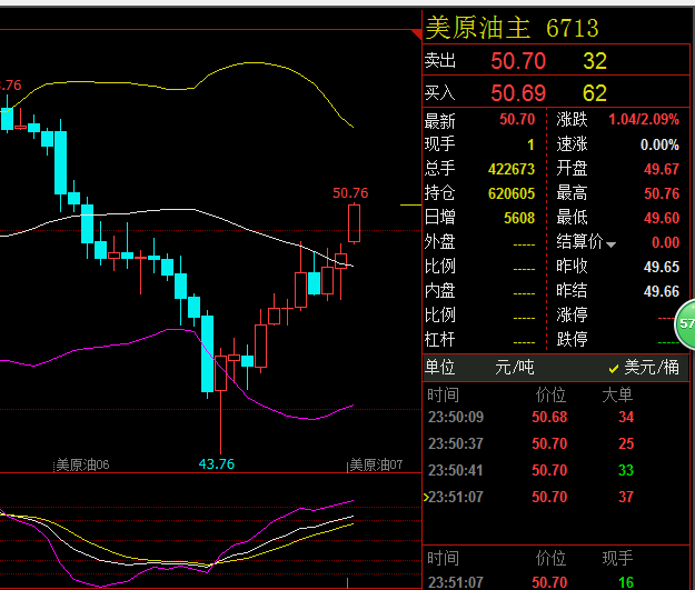 文/火山点金 投资如水,可静静流淌深思沉静,亦可洪波涌起激拍长空,该安静陈思就要急流勇退,看准了就要逆流而上。 我们先来看原油的行情,原油近两周开始走强,很多朋友都热切的想知道是不是做多方向已经确立了。特别是之前在46.5到47美元跟随我做多的朋友在51美元出局之后开始跃跃欲试急切想知道怎么操作。 原油我一直看