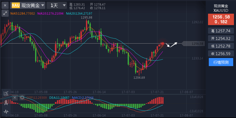 雷蒙宇:黄金1258欲破难破待回调,策略上高沽低渣 谁模糊了你的眼,遮挡了你的视线,让你全都视而不见。市场从不缺投资的热情也不缺行情,缺的是敢急流勇退的人。周一,市场基本是处于一个盘整态势,虽美盘曾小幅走高触及1258一线,却并未能完全破位上去,后回落盘整,足以见上方1258一线的阻力很强。而笔者雷蒙宇在昨日的文