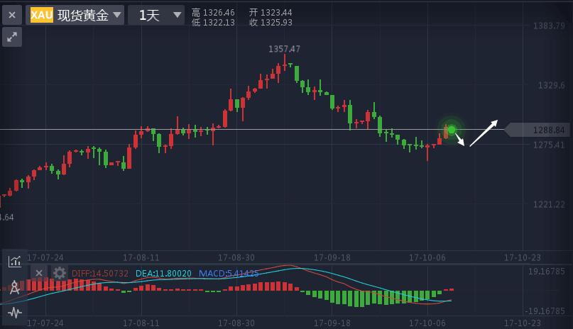 雷蒙宇:黄金多头独木难支,阴阳转换1290低多 周一(9月25日)黄金的走势非比寻常,似乎就像准备好了一个坑在等大家往里跳。先是周一盘初黄金直接跳空跌了近7美金后日内整体行情出现了半死不活的行情走势,直至美盘朝鲜外交长向外宣布特朗普向朝鲜宣战,在市场上引起了轰动,使得黄金多头头寸大量买进,并一度从下方1288美元