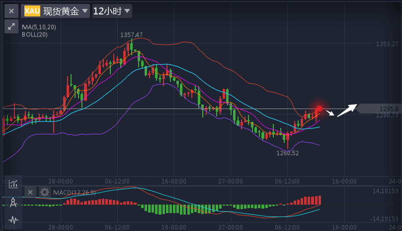 雷蒙宇:黄金守稳1280将再度上涨,回调做多看1290 市场多空博弈其实是利润的二次分配,也是财富的重新规划。本周一黄金价格延续上周五非农先是一轮暴跌,但受到美朝战争舆论影响使黄金形成了V行反转,而强势拉升,周一也受到避险导热影响受黄金亚盘延续了上周五的涨势,涨了逾10美金左右,而周一美盘相对来市场行情说就相对