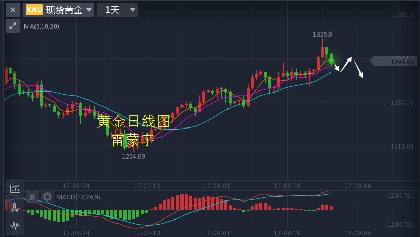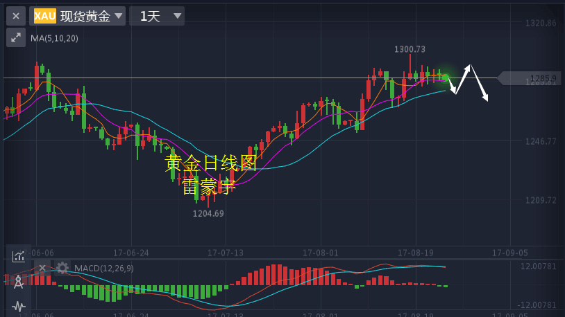 雷蒙宇:黄金跌破千三神坛逢高空,美原油难改趋势空依旧 周三,市场随着地缘避险情绪的逐步消减,黄金强劲的多头势头似乎也暂告一段落。周三,黄金在亚盘小幅反弹后,欧美盘续跌,最低触及下方1204.8美元。这也是本周黄金继上上个交易日后再度略微收跌,眼看多头将一去不复返,黄金能否借助周五非农起死回生。雷蒙宇看来:此