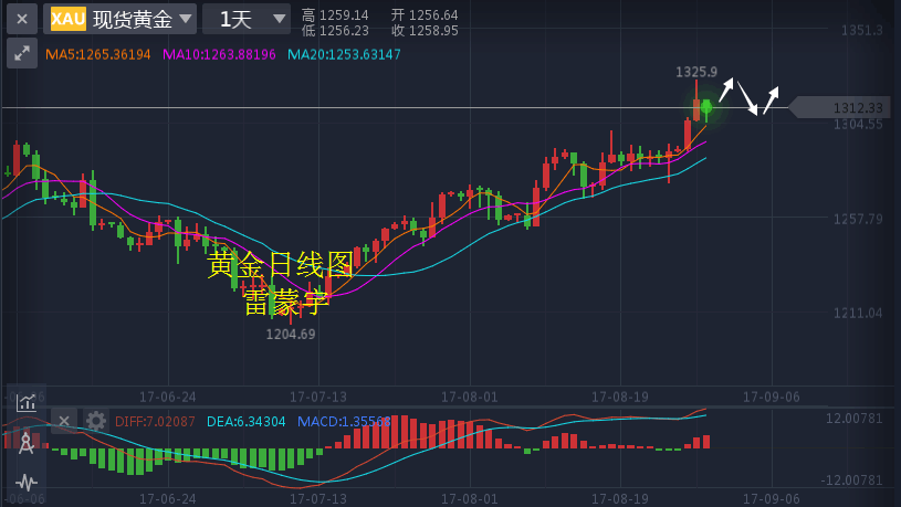 雷蒙宇:朝鲜玩火加剧避险,黄金回撤做多 此次朝鲜不计后果的发射导弹,无疑是对美韩军演所表示的不满,用发射导弹来进行发泄自己的情绪,也意图告诉美国不要挑战其底线,这种强硬的态度点燃了黄金市场多头的热情,从而大幅拉升黄金而一举打压了美元。也在亚盘回调时在1317附近大胆的做了多,欧市黄金再度刷新新高,触及上方