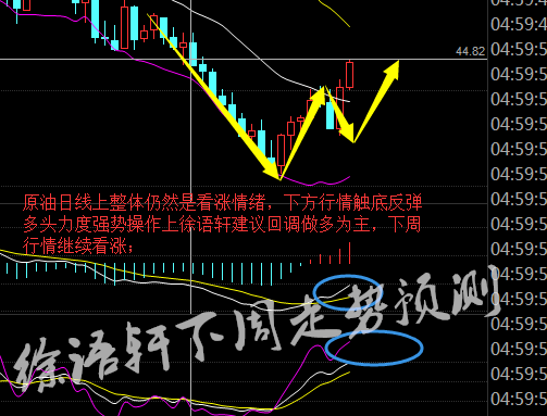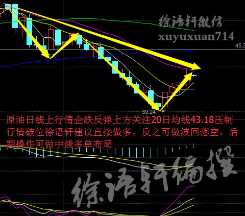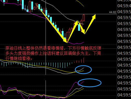 昨晚的油价可谓是比原有EIA还要精彩,美原油直接是从41.1上冲到43.8位置,在前两天徐老师还说布局的中线多单,昨晚布局的中线多单获利3美元出局,今日行情更是高位震荡上行,日内行情是否有回调机会呢,这个是很多投资者想要知道的,简单的从技术面上看,多头强势,不过技术面上日内是有回调机会的;为何这么说,以下徐老师