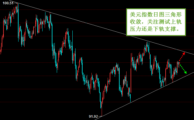 上周美元的强劲的表现横扫市场,无惧一切,零售数据不佳毅然坚挺,CPI表现靓丽,再给上涨增添动力,虽然市场普遍预期周四凌晨美联储利率决议上不会加息,但美元的多头似乎不买账,坚挺不倒。技术面美元指数日图企稳91.92至93.0连接的趋势线支撑,守住95.0一线,向上重新回到96.0之上,突破97.57至96.26的短期压力线,将会测