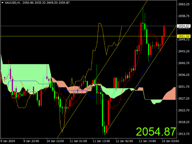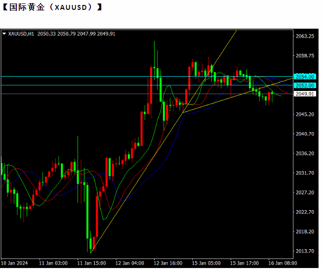 耐心地面对资本市场的变化与永恒,是要求投资者去理解这个变化与永恒的原因和来源,避免默守陈规。重要的不是去跟随变化或者因循守旧地逆历史潮流而动,而是真正静下心来、耐住性子,理解一切变和不变,从而升华到适合自己的投资哲学。 上个交易日金价聚集看涨势头,并在盘中攀升至 2060美元/盎司上方的高点。美国生产者通胀数据疲软后,地缘政治紧张局势不断升级,美国国债收益率回落,推动黄金价格在周末前上涨。技术面看,黄金上个交易日大幅上涨,日线报收带较长上影线的大阳线,日线级别仍处于强势整理区域,中长期趋势看滞涨态势。1小时图上升通道中运行,目前价格站上云层上方,并依托基准线稳步上行,预计短期