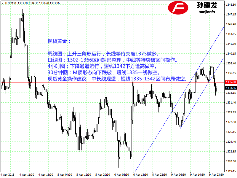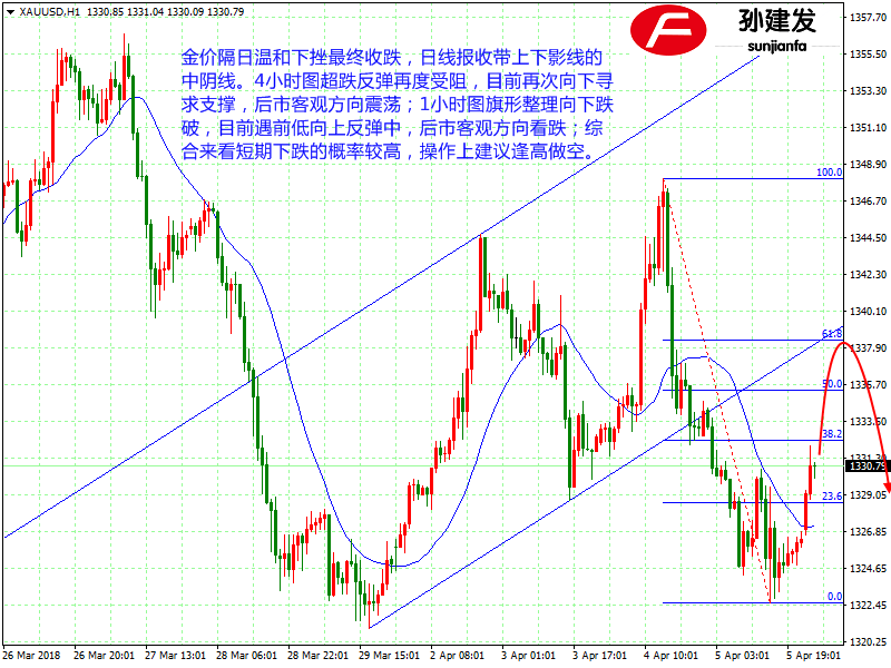 【基本面】 美元指数隔日下滑,全球股市上涨,因美国政府淡化可能与中国发生贸易战的忧虑,但交易员仍保持谨慎。两国威胁对对方数以百亿美元计的商品征收关税,但美国特朗普政府官员强调,还未实施关税,争端可以通过对话解决。金价上个交易日上涨,因美元转跌,但对中美贸易对峙可能升级的谨慎态度,美国即将出炉的数据和美