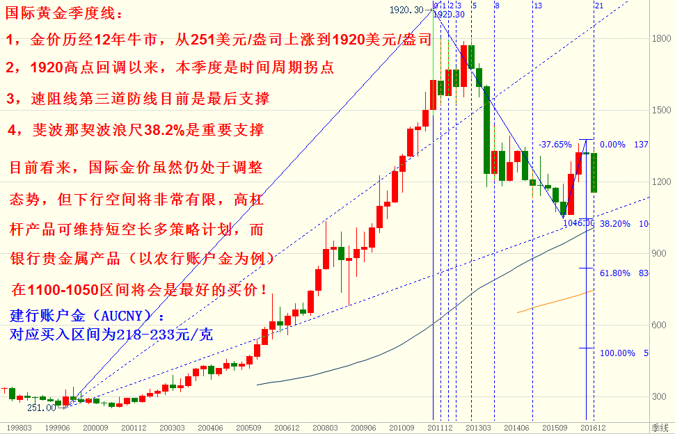 打开电脑看看盘面,K线还是那个K线、形态还是那个形态,251美元/盎司的金价我没看到,但我亲眼看着金价从681美元/盎司上涨到1920美元/盎司,关于后市行情我已经说太多了,就在最近一次金融行业盛会的圆桌论坛上,我依然保持客观独立的观点,没看到的朋友去问度娘吧。好了,看下图吧,因银行账户金的特殊性,从1920美元/盎司