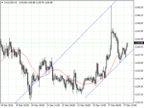【行情回顾】 美元兑日元上个交易日在淡静交投中上涨,受强于预期的美国经济数据提振,美元上涨,但兑日元仍低于近期触及的10个月高位。金价隔日升至近两周高位,因日本通胀数据疲弱,但交投清淡,美国交易员在圣诞长周末后返回市场,但伦敦市场仍关闭。大部分分析师认为,对欧洲银行业的担忧,以及围绕美国候任总统特朗普