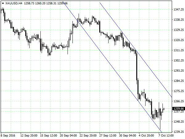 【策略分析】 现货黄金(XAUUSD):金价隔日从上周录得的11月来最大周度跌幅中反弹,因上周五美国公布的就业数据低迷,打压了美国短期内加息前景,且在中国国庆黄金周假期后,中国买家重返市场。上周金价大跌4.5%,并在上周五触及四个月低点每盎司1241.20美元,跌穿在1300美元的支撑位后触动一波技术性卖盘。技术图表显示,