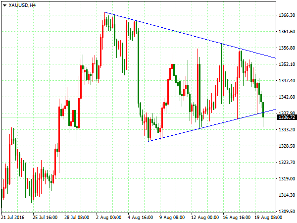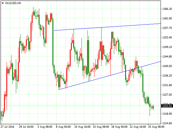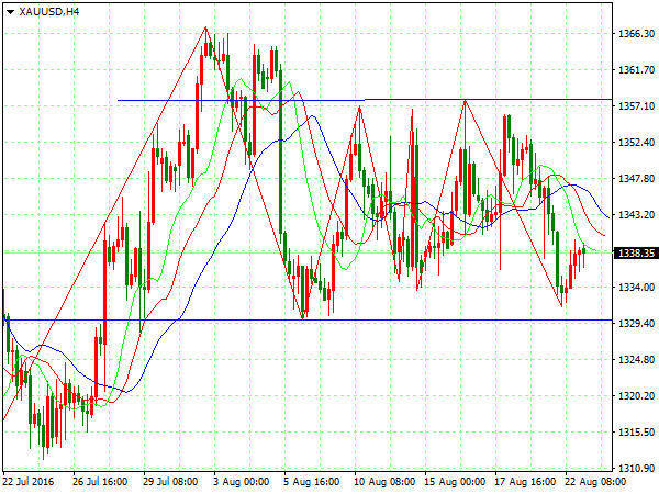 【策略分析】 现货黄金 (XAUUSD): 黄金 隔日微幅下跌,触及四周低位,因美国经济数据向好,美元上扬, 金价 受到打压。此外美联储主席耶伦周五将发表讲话,市场高度关注,希望能从中寻找货币政策的线索。美国经济数据显示,美国7月耐用品订单连续第二个月增加,美国上周初请失业金人数意外减少。技术图表显示,金价昨日