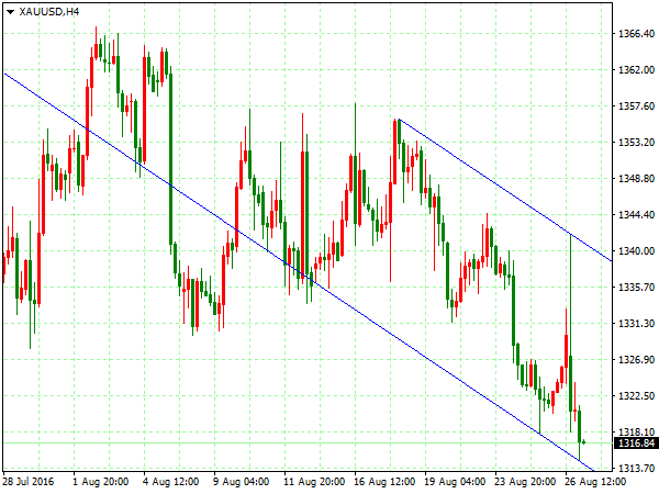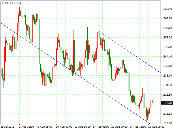 【策略分析】 现货黄金(XAUUSD):金价隔日受美元回落带动,从近五周低位反弹,离开稍早因美联储高官的鹰派评论触及的低位。美联储主席耶伦和副主席费歇尔的讲话令美联储会尽早升息的预期升温。现货黄金盘中触及7月26日以来最低1314.70美元。技术图表显示,金价隔日先抑后扬,日线报收带上下影线的小阳线;4小时图下降通道