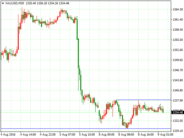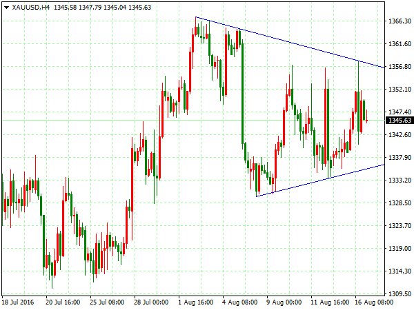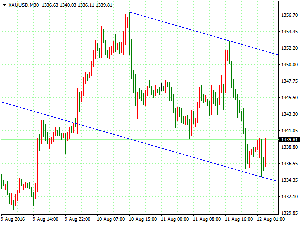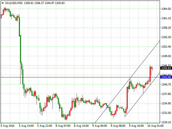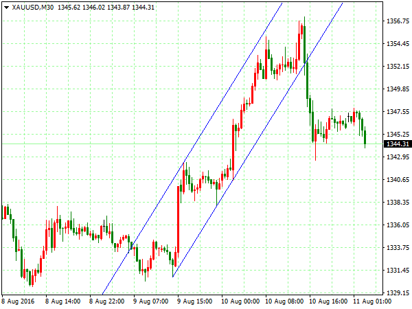 【策略分析】 现货黄金(XAUUSD):上个交易日金价小幅转跌,因美元缩小跌幅。美国7月零售销售零增长,美联储加息预期降温,金价闻声跳涨逾1%。稍后美元指数跌幅缩窄,金价转跌。技术图表显示,4小时图前高遇阻回落,阶段性上升通道向下跌破,短线逢高做空;30分钟图大幅下挫低位运行,短线逢高做空。操作上建议短线1344附