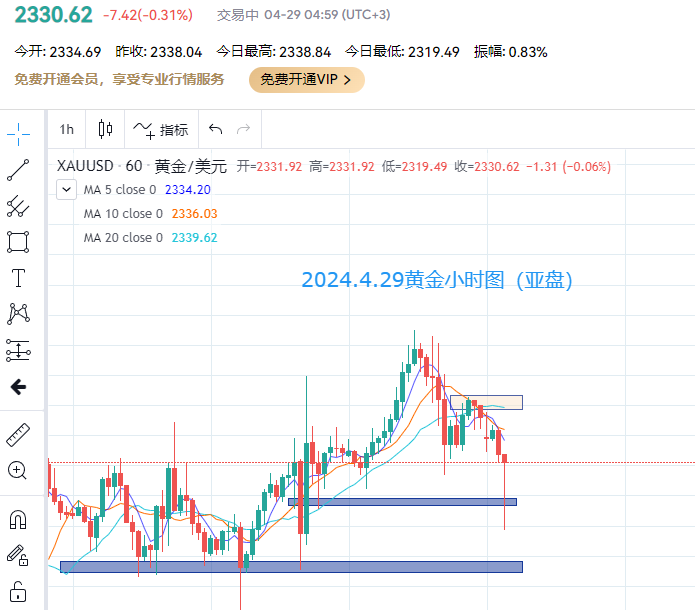 昨日黄金亚欧盘继续延续前天日线级别的下跌走势,盘中在欧盘前给出的2310空,止损2315,成功到达日内目标2292位置。欧盘测试2292后再次开启反弹,美盘延续至前期多空转换位2332一线继续承压下行。 黄金当前盘面继续走弱,昨晚自2332区域承压后慢步下跌,早间可以参考小级别压力2320区域继续做空,防守5,短线先看2310一线。 本文客观理性的对后市走势做出方向性判断,文中操作建议仅为作者个人观点,且作者秉承“重势不重价”的交易原则,所以需要盘中实时调整点位, 内容仅代表作者观点,仅供学习交流,并不构成操作依据。如有需求可联系本文作者。盘中交易策略欢迎添加实盘 V信:Br300899 Q