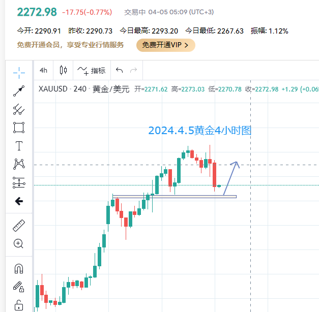 在上周五非农数据利空的冲击下,黄金周五晚间非农公布后短线下挫 12 美元后继续延续都头走势,历史高点来到 2330 一线。实盘策略周五早间分享 2271/72 位置做多的策略,目标直指新高,随着非农后黄金拉升冲高继续刷新历史,这个策略也完美兑现。 黄金多头强劲,早间开盘小幅回落测试 2302 一线继续拉升。今日黄金继续关注回落做多机会。下方关注 2298 区域做多机会,防守 4 ,短线目标继续看 2320 ,并关注高点 2230 区域突破后多头延续的机会。另外,当下黄金 2320 一线压力位, 2302-2305 这个区域也是做空需要关注的区域。 本文客观理性的对后市走势做出方向性判