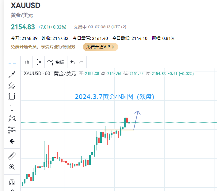 早间黄金的一波拉升,直接突破昨晚高点,最高来到 2162 区域。实盘群早间提示的 2143 区域做多意外因 1 美金只差踏空。黄金屡创新高,上不言顶。欧盘关注回落小时级别支撑区域 2150/52 区域做多机会,防守 4 美元,避开早间的这波起涨点即可。目标继续看前高和新高。 本文客观理性的对后市走势做出方向性判断,文中操作建议仅为作者个人观点,且作者秉承“重势不重价”的交易原则,所以需要盘中实时调整点位, 内容仅代表作者观点,仅供学习交流,并不构成操作依据。如有需求可联系本文作者。盘中交易策略欢迎添加实盘V信:Br300899 QQ:1211945182