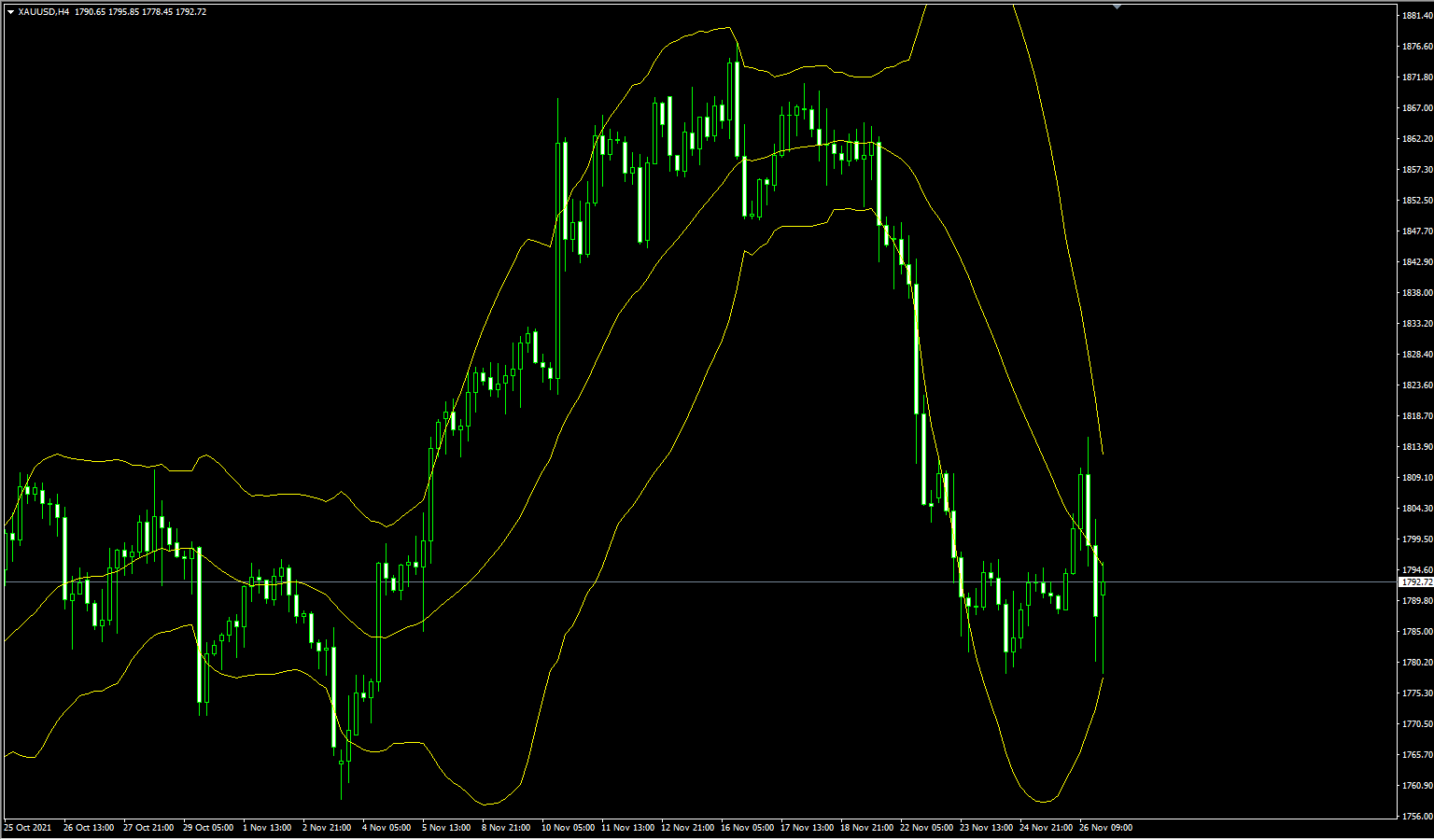 因昨晚美国方面公布的两个数据比较差劲,令金价先拉升至 1808.6 水平。但美联储主席鲍威尔的讲话犹如一头灰犀牛出现。鲍威尔明确表示: 12 月份的货币政策会议上将会讨论结束购债,注意,是结束购债,不是进一步缩减购债。昨天笔者在微信公众号里的观点中提到一句隐隐的预感:可能会发生黑天鹅事件,这只是一种盘感,没有任何根据。事后来看,这是个灰犀牛事件令国际金价在 1 个小时内跌了 36 美元空间。 后市金价要去哪里呢?我们知道,今天是 12 月份的第一个交易日,所以关注月线是否破位非常关键。如下图所示,金价上月就是因为没有跌破月线布林中轨支撑展开的拉升反弹动作, 目前来