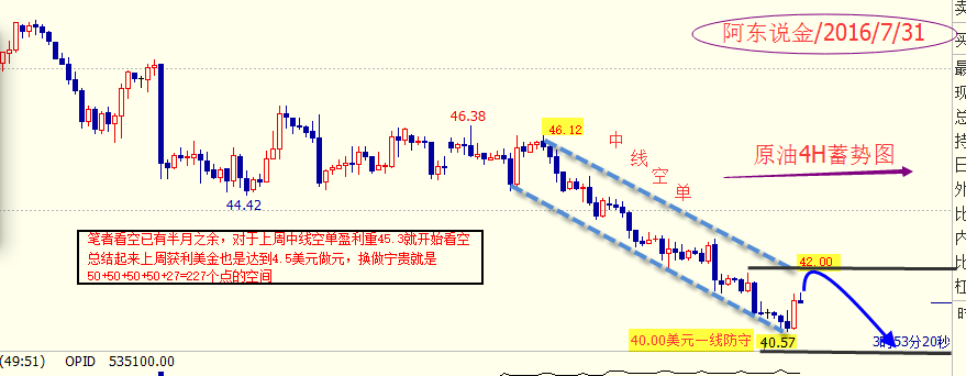 阿东说金:8.4金银受美元承压,原油维持反弹做空 做投资跟什么人就是做什么单,做投资如同下棋,步步为赢,步步为盈;趋势是没有错,投资的根本就是为了盈利,归根结底,跟对人做对单,翻仓就是如此简单。 EIA数据利空,先是急跌在反转,结果的确是不符合常规的,原油的台阶式下跌,任何角度基本面技术面就是一个看空的迹象