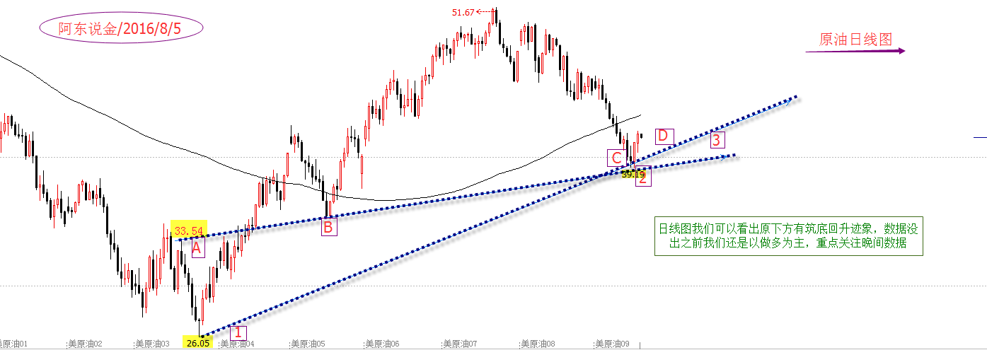 阿东说金:8.5非农前金银日内做多,原油筑底回升 周五也是来临,超级周的最后一个交易日。市场会让一部分翻仓,此时的你必须具备风险意识,老师是盈利的关键,你的头脑决定了你的选择,而你的选择决定的你的收益。阿东十二字真言:顺势而为,风控为主,趋势为王。 今日的数据金银我不敢多说,具体我们做晚间的数据来决定;
