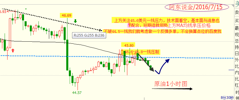 阿东说金:7.13金银显双顶短期上行受阻,南海仲裁使原油局面紧绷 行情是很多,这句话没有错,但是请你珍惜行情,不能多了就泛滥,机会都是留给有准备的人,你不去抓住行情都是等于零,等待的话资金是不会翻倍的,再者就是行情对待任何一位都是公平公正的,绝对不会去偏袒任何一方,行情是没有问题的,你资金再大或者你资金