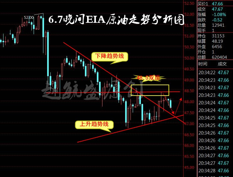 【油市速递】 油价周二在经过上周5连阴后在昨日成功止跌,录得一根大阳线。周二美国WTI原油7月期货收涨0.79美元,涨幅1.67%,收报48.19美元/桶。布伦特原油8月期货收涨0.65美元,涨幅1.31%,收报50.12美元/桶。 构成油价上涨的主要原因或在于分析人士预计周三公布的美国EIA原油库存料将连续第九周下滑;而普氏能源则预计