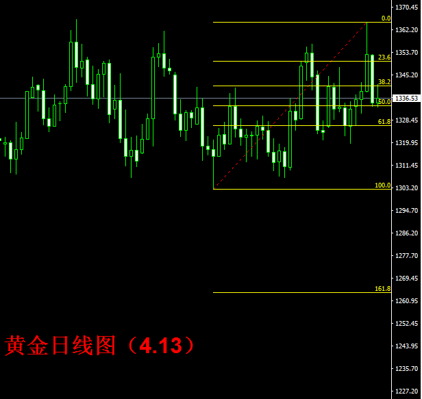 黄金交易策略实时分享,以分析求生存,以盈利求发展。 黄金交易投资要领: 顺势为皇,轻仓为王,点位为相,止损至圣,稳健收益,落袋为安,贪心必败! 黄金日线图(4.13) 计划你的交易,交易你的计划,说起来很易的一句话,但你是否能交易你的计划,却是最关键处,也是最难执行的。在所有不好的交易习惯中最坏的习惯是不执行